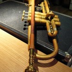 This trumpet belongs to a renowned artist who resides close to the WI border. He has got to be the only musician that has a 24k gold plated mouthpiece! I have to admit, it looks great on his brass trumpet that has over 15 years of natural patina on it after stripping the lacquer.