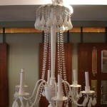Our customer picked out the c2 paint color and hit it right on the button for the restoration of this great milk glass tear drop crystal fixture. We also bright nickel plated all of the brass chain that holds and connects all of the crystal.