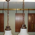 Wouldn’t this pair of pendant lanterns look great over that island in your kitchen? They have been rewired, including new sockets and polished nickel plated. The original milk glass was hand cleaned and restored to excellent condition.