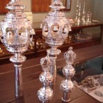 Here is a before and after that examplifies our ability to fabricate the detailed missing parts on these torah crowns. Saving the engraving while polishing is not a problem for our skilled craftsman.