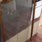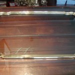 We masked off the glass on this table top allowing us to polish and lacquer the brass trim without removing the glass.
