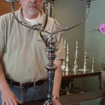 This is the largest candelabra I have come across measuring 35 inches! We repaired the center column and straightened the arms so that it could bear the heavy weight. A color buff was only required due to the great condition the silver plate was in.