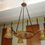 Polished nickel is the finish on this beautiful etched amber glass ceiling fixture. Due to the design, we had to package and send this to Ohio assembled. You can trust your prized possessions with us.