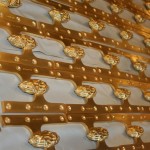 These are the 150 olive knuckle hinges from our previous blog entry that we took from a polish brass to a satin finish with a 24k gold plate. We also supplied 1,200 screws with the same finish on this job!