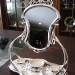 Our craftsman needed to fabricate numerous missing parts in order to get this turn of the century vanity mirror back in working order. The restoration was completed with a polished silver finish.